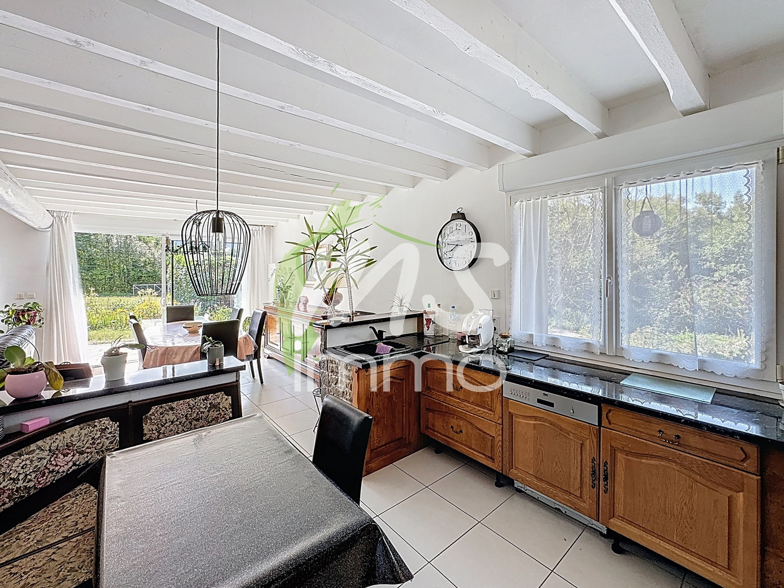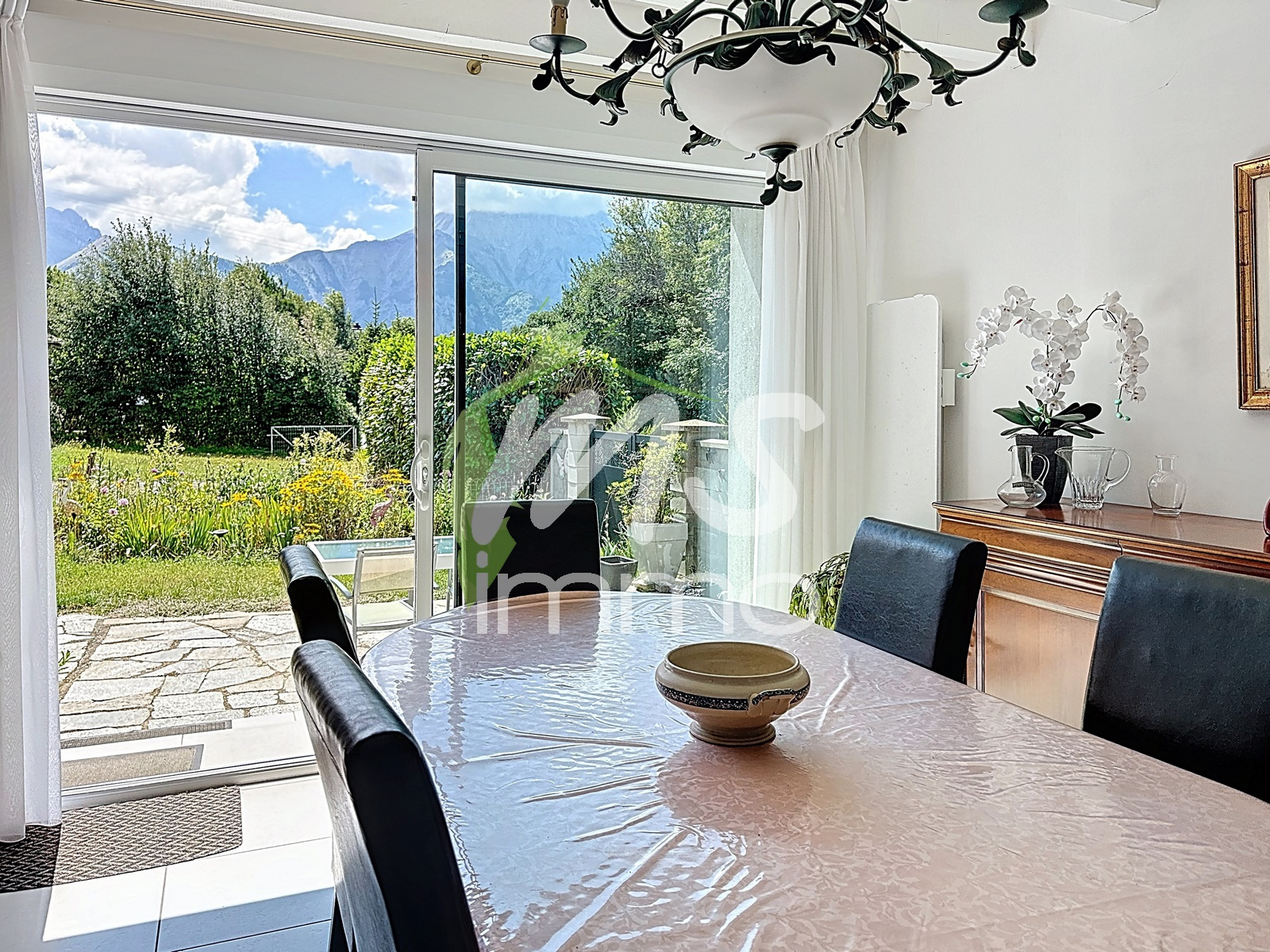 Le séjour et la salle à manger, ouverts sur la cuisine, donnent accès à une terrasse et à un petit jardin bien exposé, sans vis-à-vis.