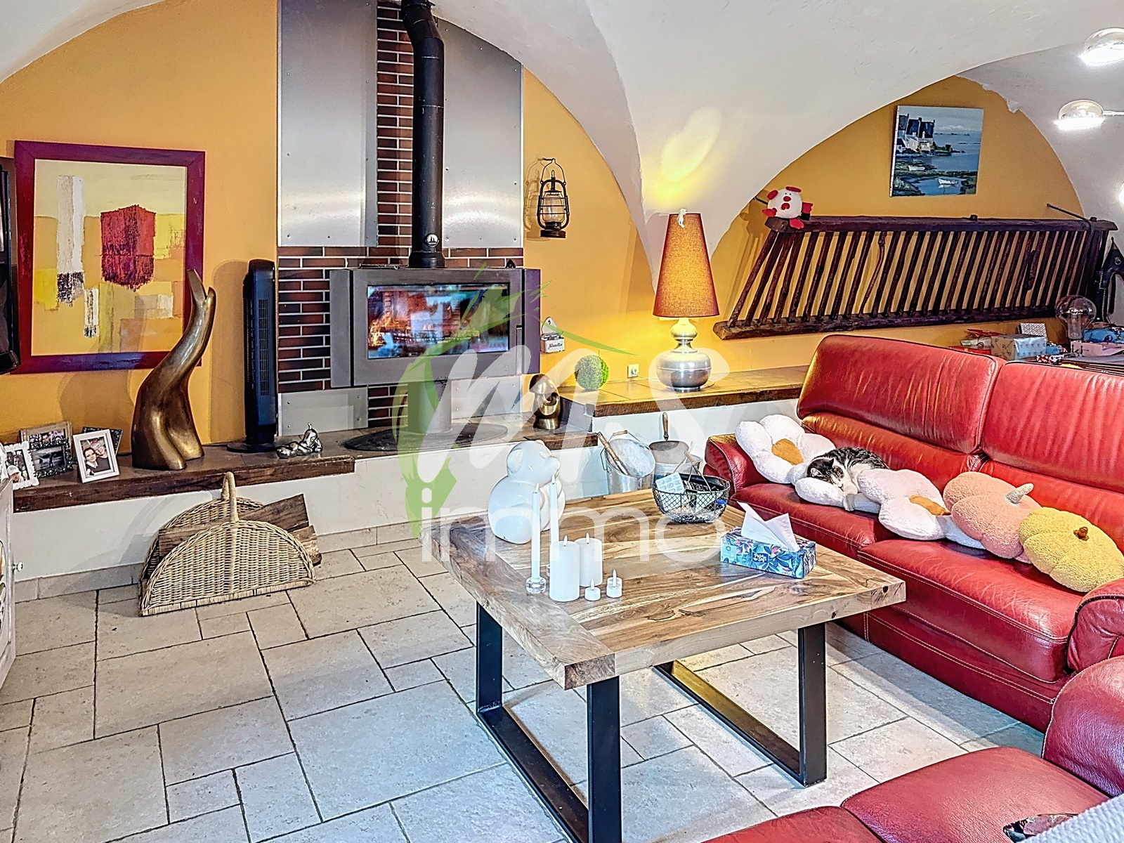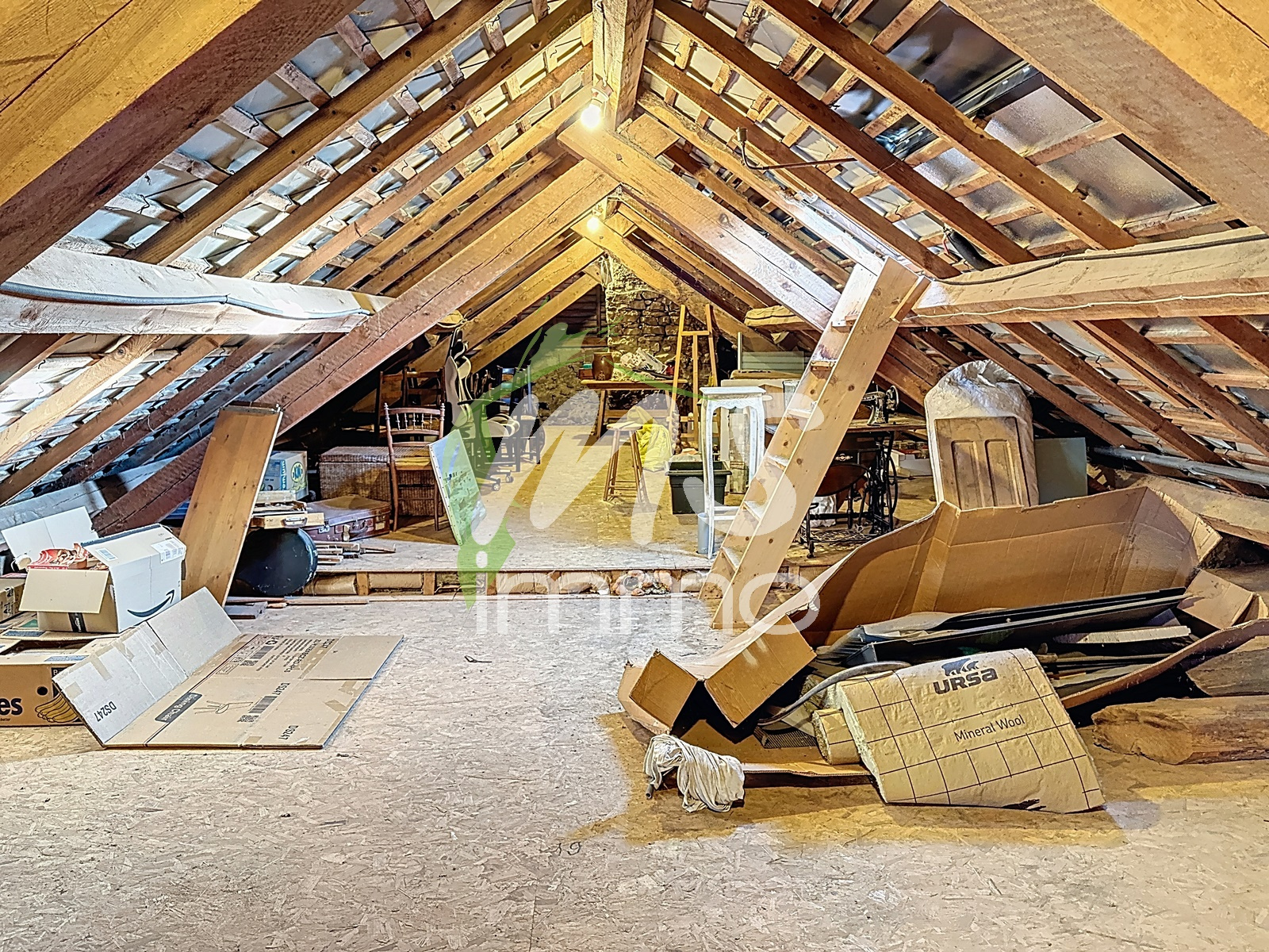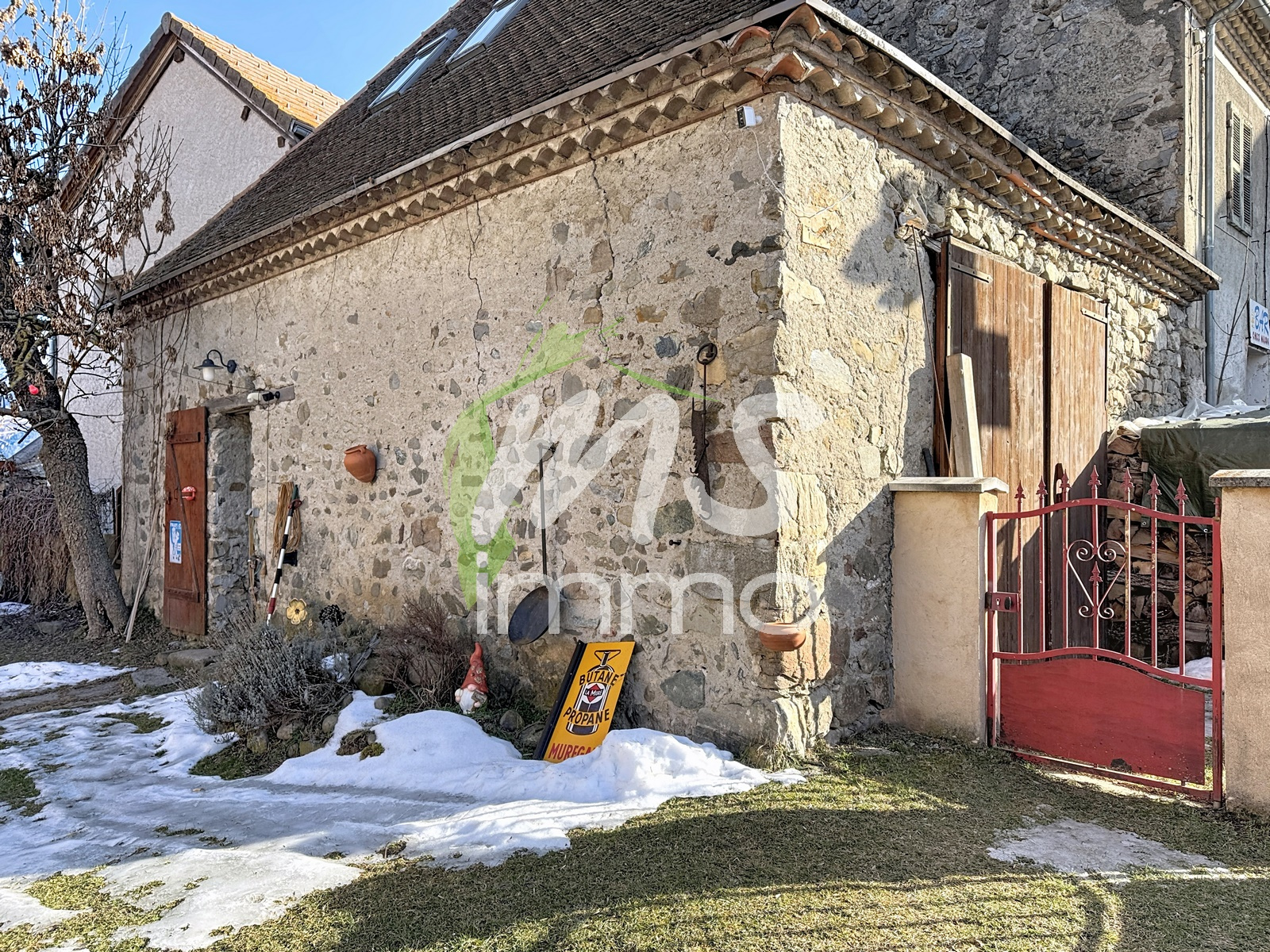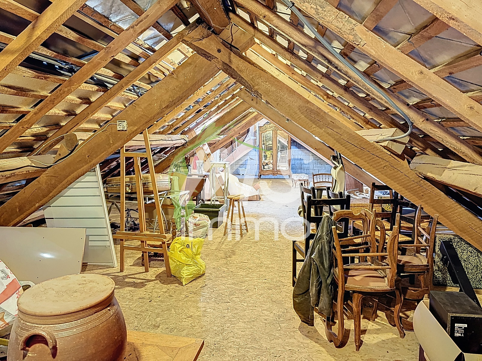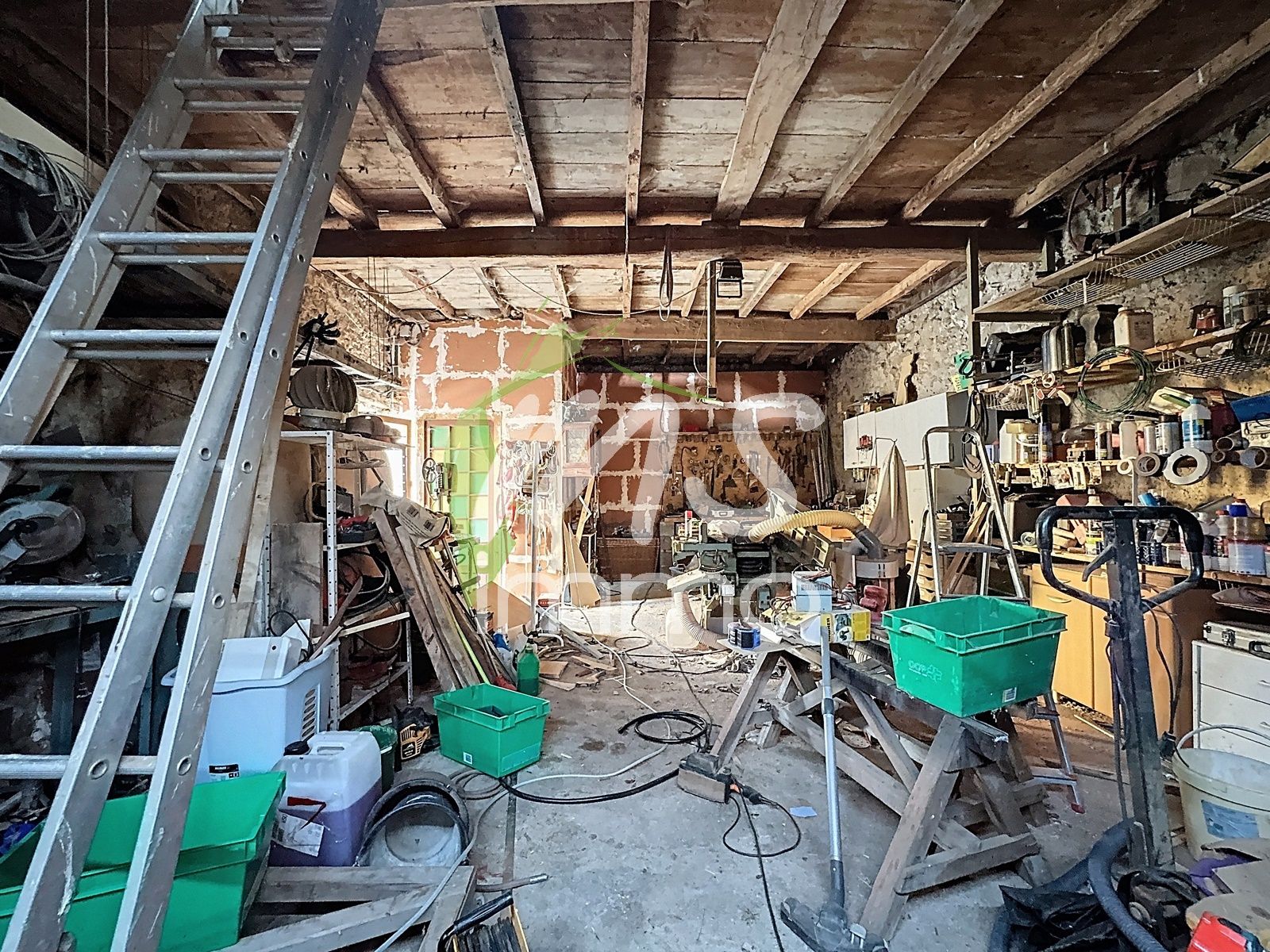 À l’extérieur, un jardin avec four à pizza, abri bois, ainsi qu’un accès en face de la maison à un ancien bâtiment actuellement utilisé en garage/atelier d’environ 50 m² au sol.