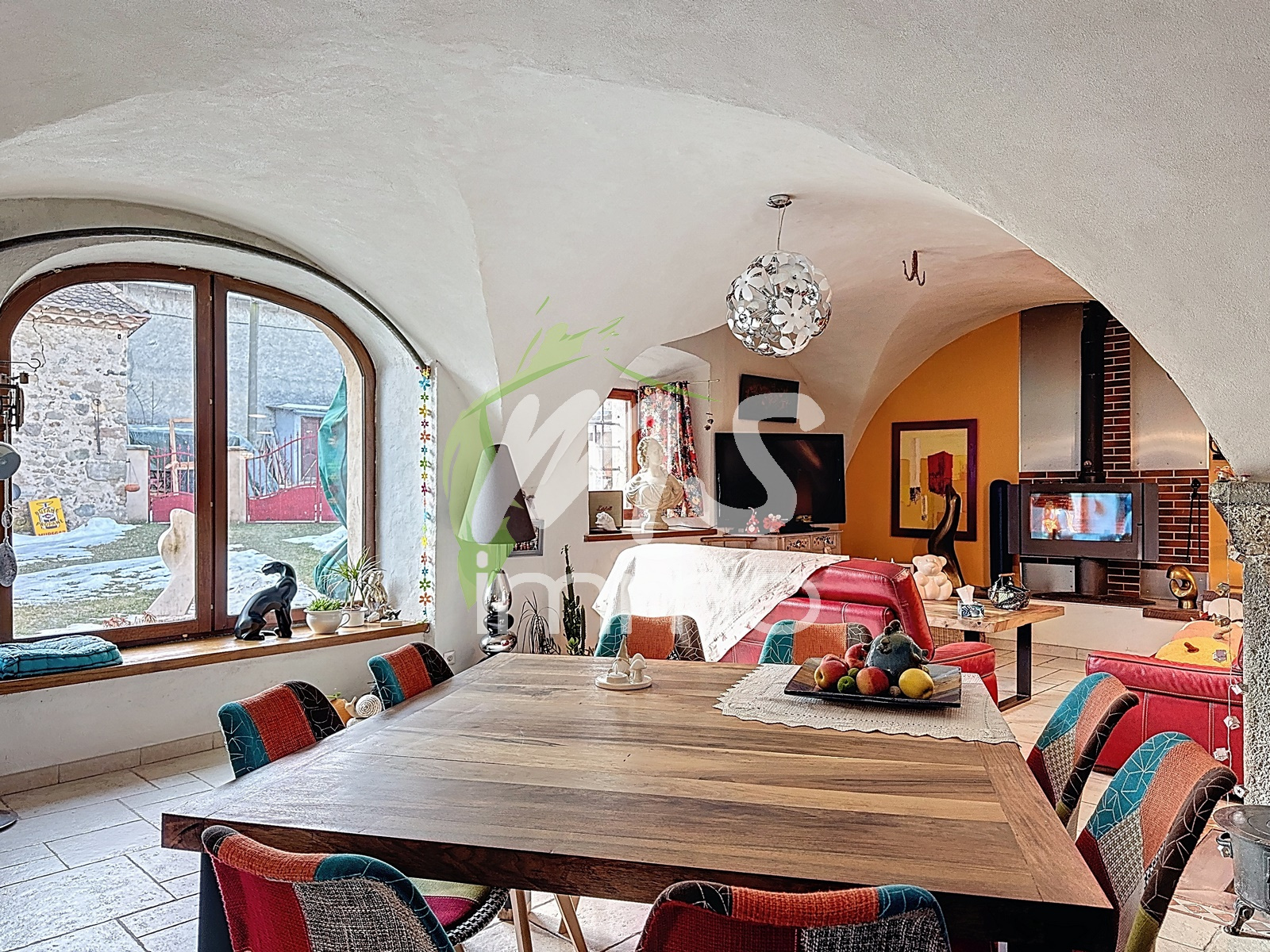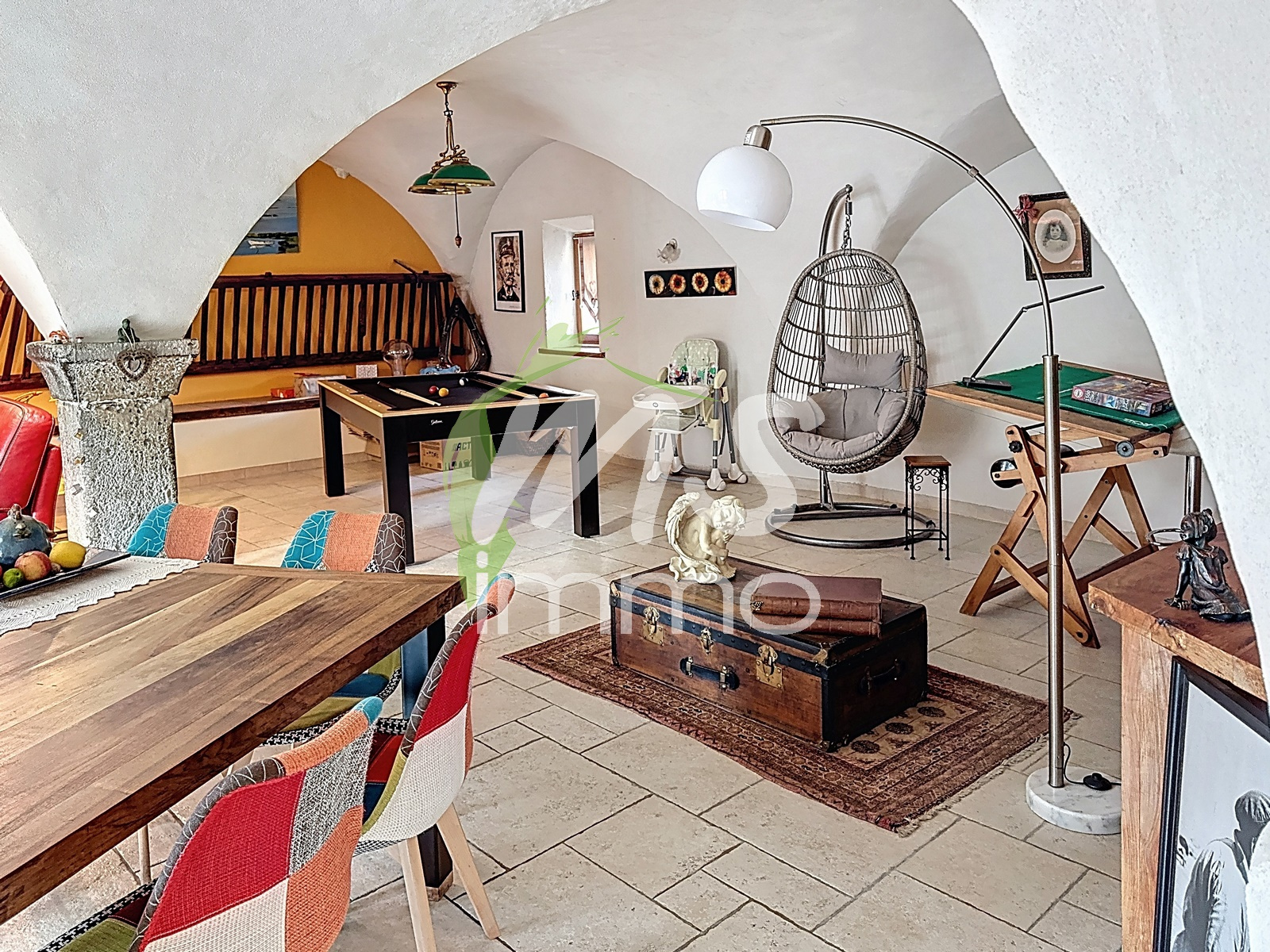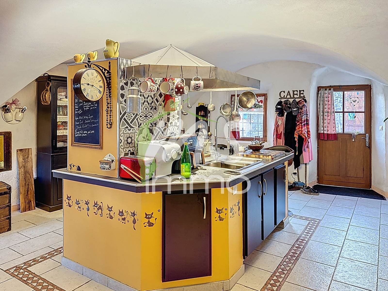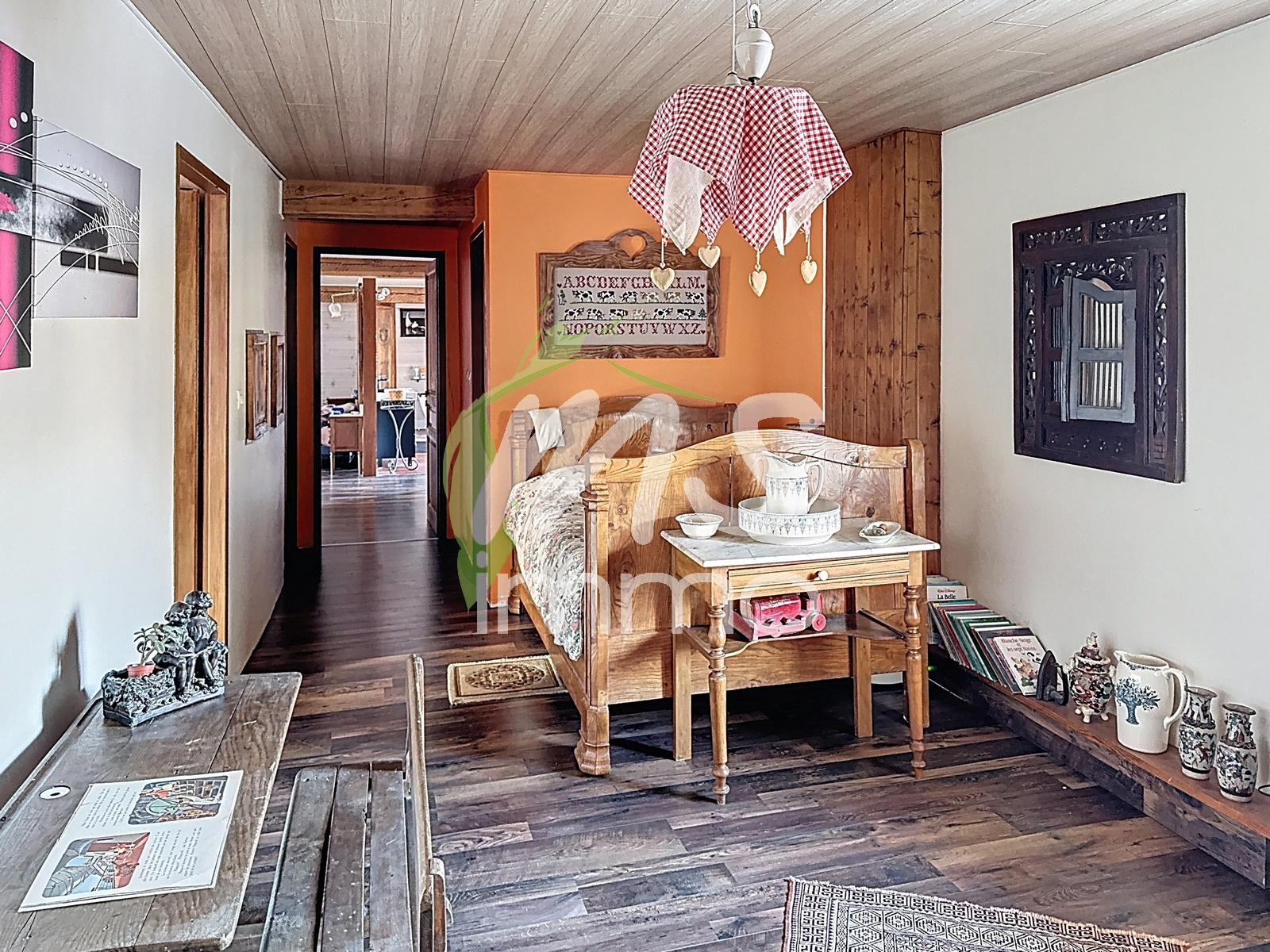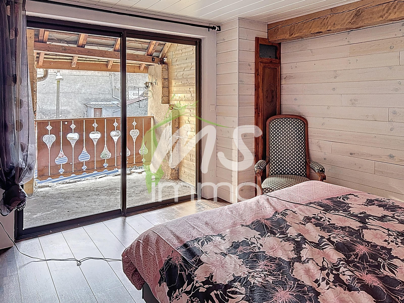 À l’extérieur, un jardin avec four à pizza, abri bois, ainsi qu’un accès en face de la maison à un ancien bâtiment actuellement utilisé en garage/atelier d’environ 50 m² au sol.