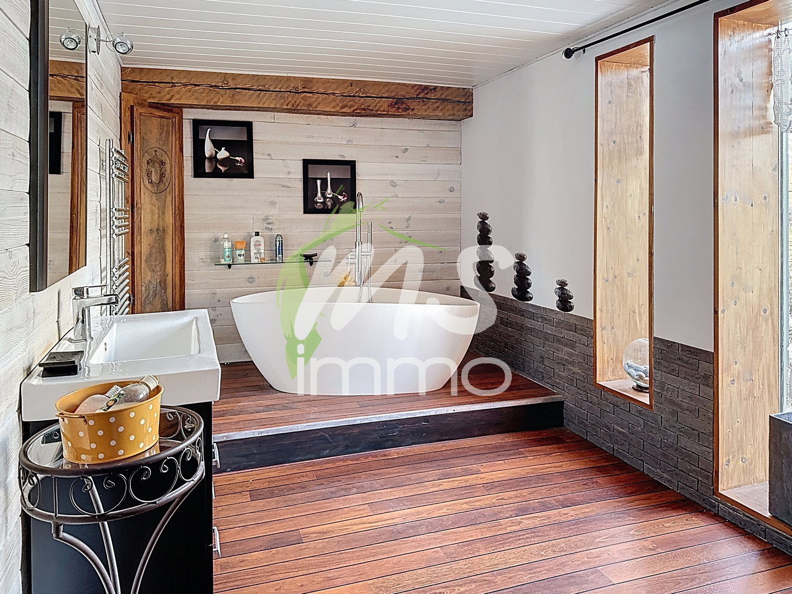 Il se compose, au rez-de-chaussée, d’un séjour voûté avec poêle à bois, ouvrant sur une cuisine séparée également voûtée, d’une salle d’eau, d’un WC et d’un espace chaufferie.À l’étage, vous trouverez trois chambres, dont une suite parentale, ainsi que deux chambres disposant chacune d’un point d’eau et d’une douche. Un second espace chaufferie et un accès aux combles complètent ce niveau.