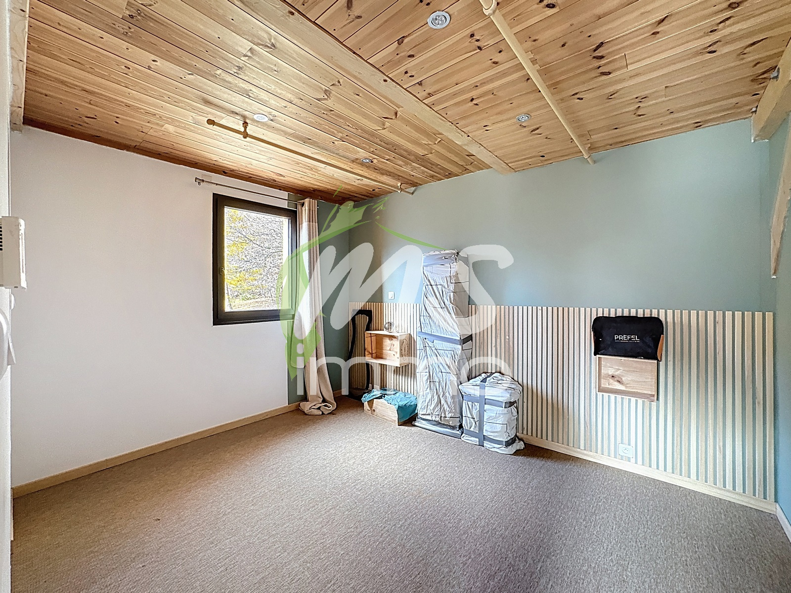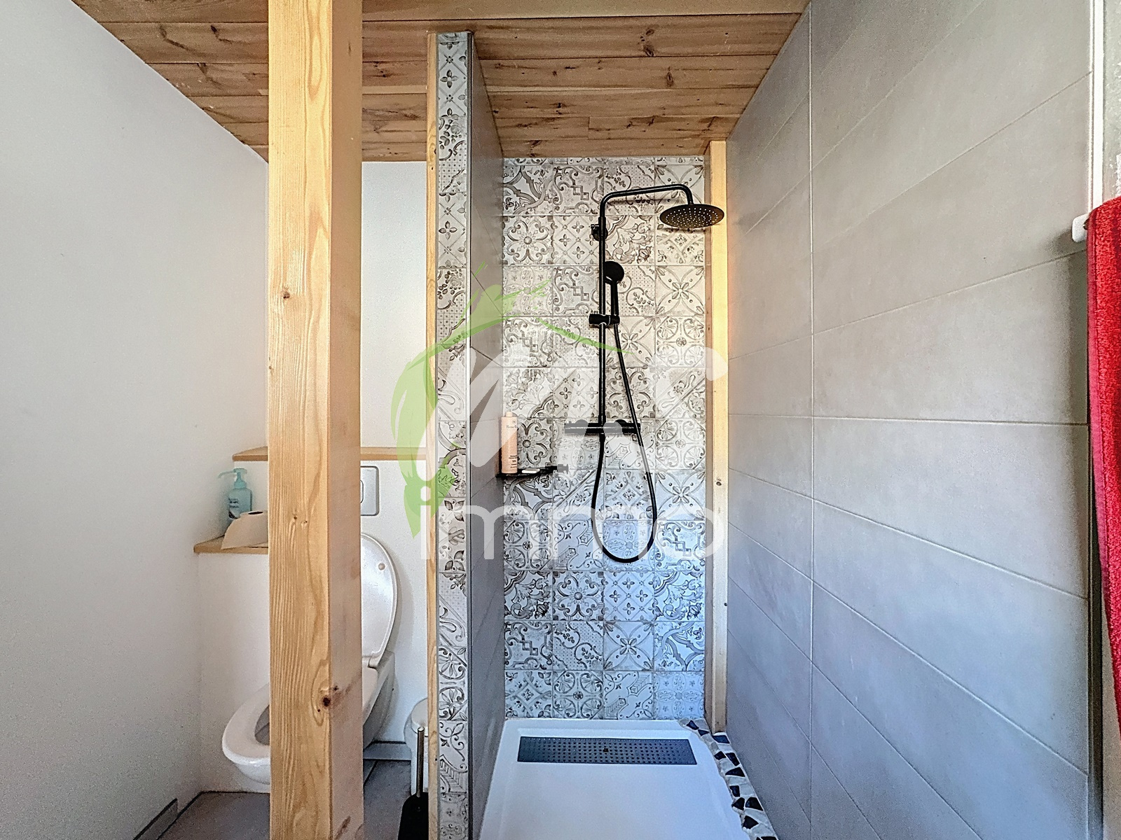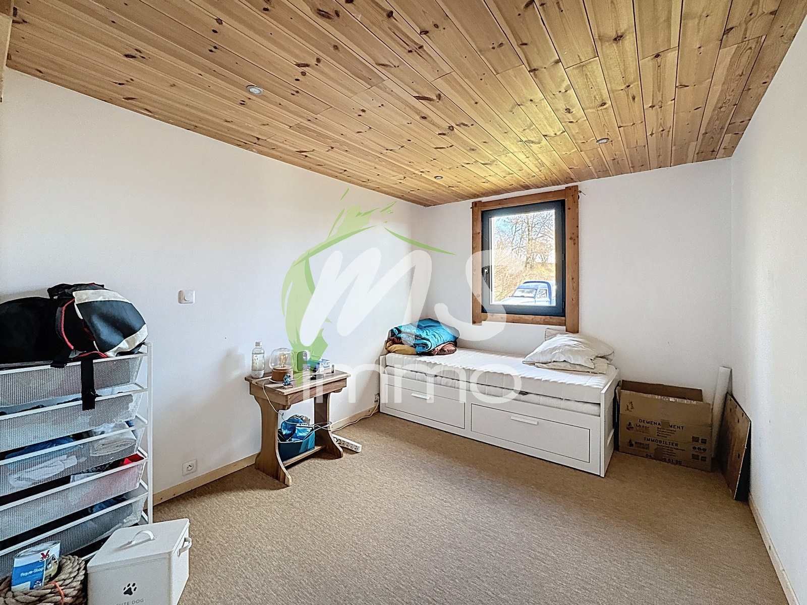 Construction récente. Chauffage par poêle à bois et plancher chauffant électrique.