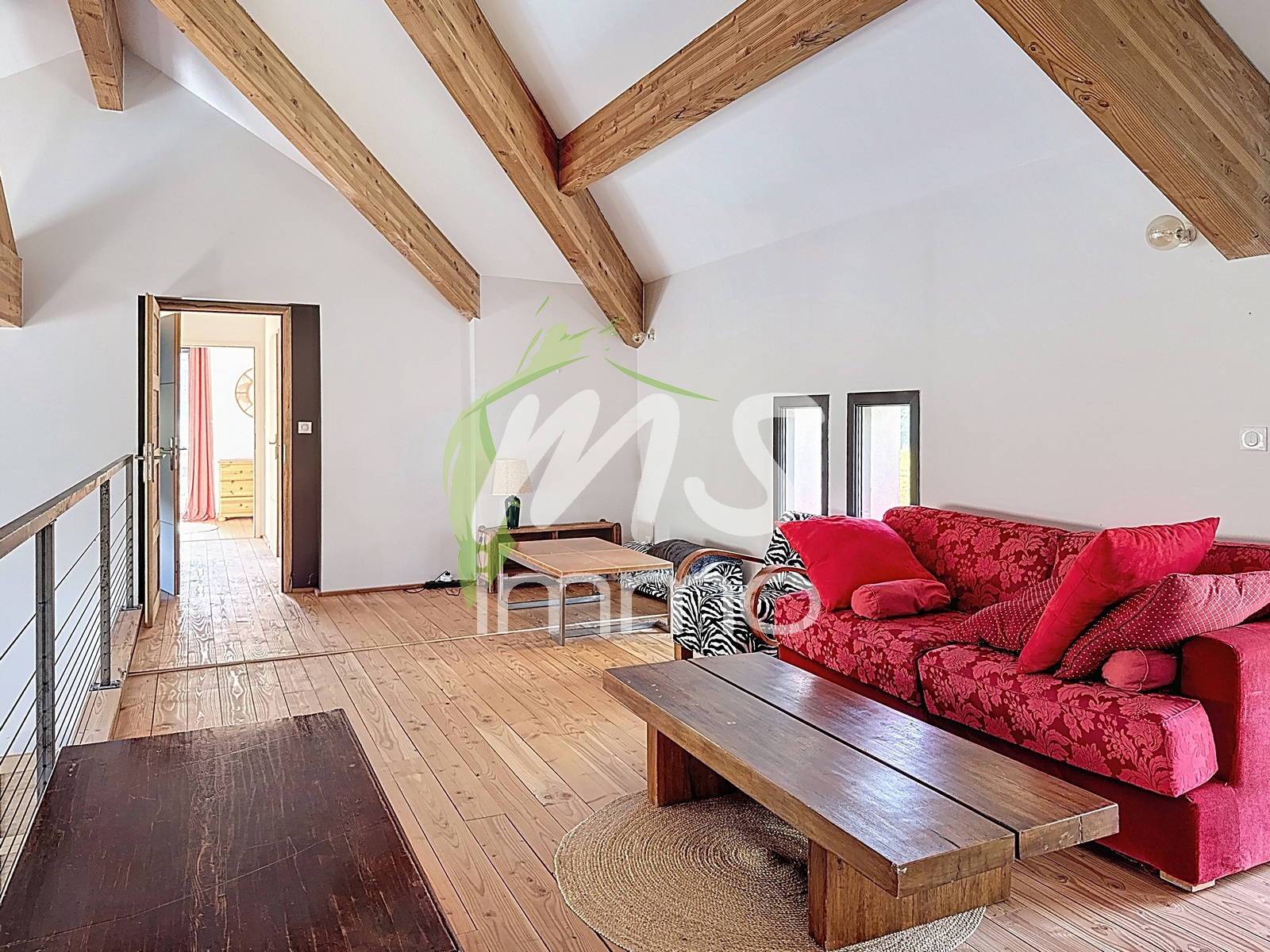 À l’étage, vous trouverez une grande mezzanine, deux chambres supplémentaires, ainsi qu’une deuxième salle d’eau.
