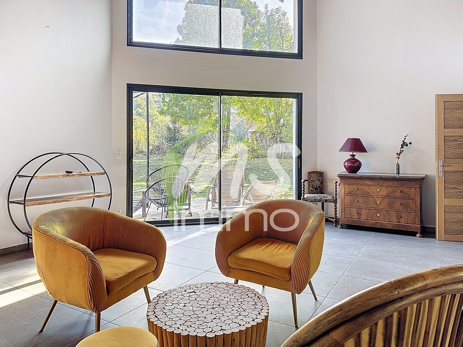 Maison récente, construction soignée, chauffage par pompe à chaleur air/eau, et petit ruisseau en bord de parcelle.
